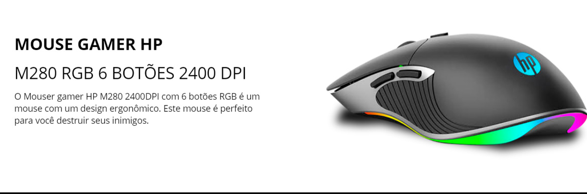 - Garanta já o seu belíssimo mouse HP gamer M280. Para máxima personalização, o mouse acompanha um software especializado, permitindo o ajuste de sua iluminação RGB em diversos efeitos, e resolução de até 2400 dpi. Com design lateral diferenciado, o grip é seguro, estável e confortável